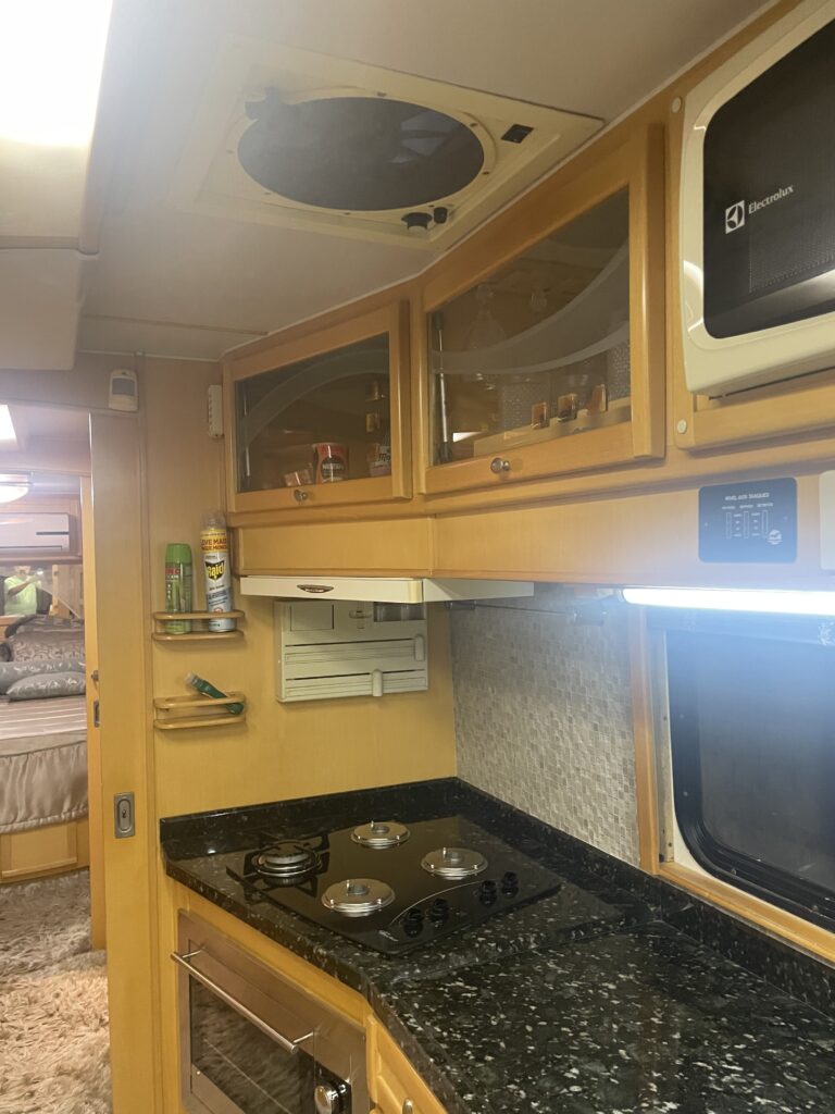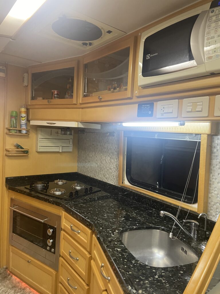 Aquecedor de ambiente canadense , nívelador hidráulico , gerador , microondas , forno Fischer , fogão  , ar de painel , quatro baterias da casa cozinha externa,TVs , pátio , sala , quarto , ar condicionado importado teto , ar split no quarto , som e home theater, pneus Michelim, toldo importado carefree ,toldinhos de janela , rodo ar , aquecedor de passagem