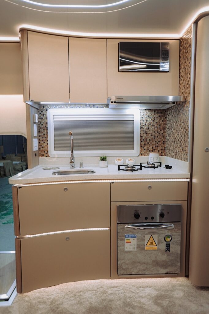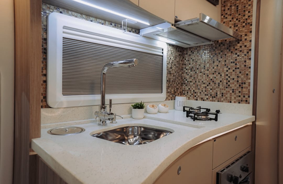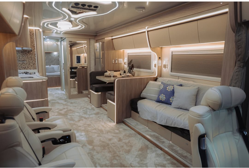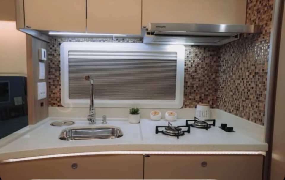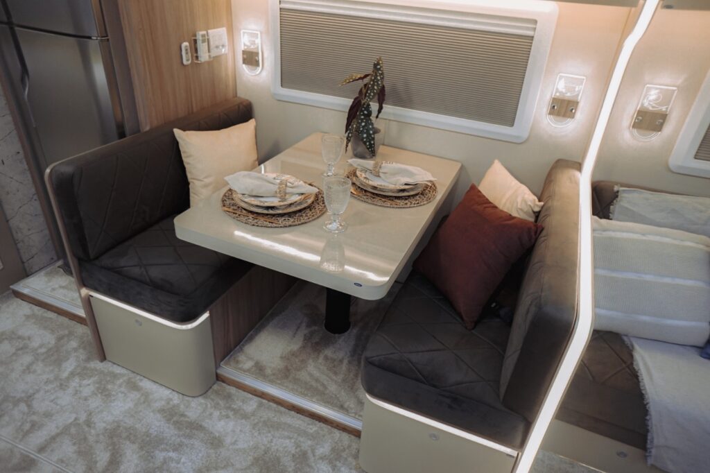 Forno a gás venax, Fogão cooktop, Capacidade 6 pessoas, Slide out ( sala de abrir com a dinete e a Geladeira), Sofá vira cama