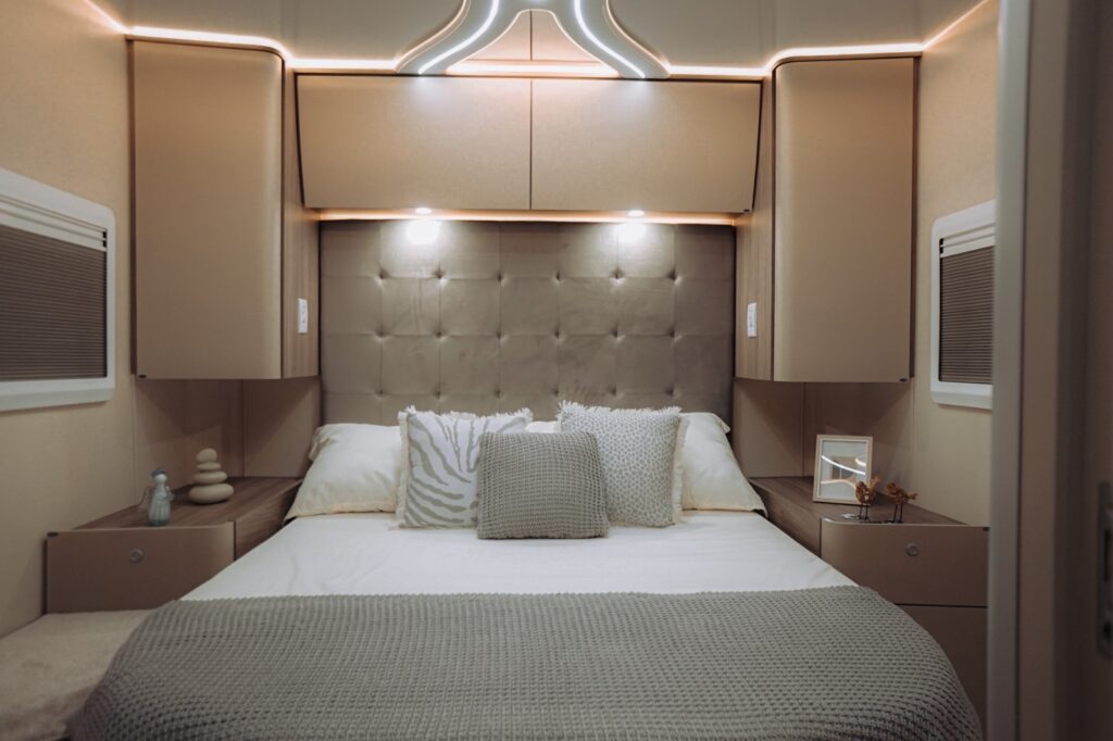 Moveis em compensado naval formicado leve e resistente, Iluminação e sancas em Led, Cozinha e banheiro de pedra, silestone. Slid em alumínio, revestimento externo em alumínio, Pintura 3D personalizada com verniz