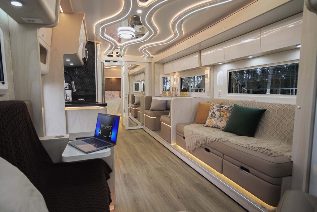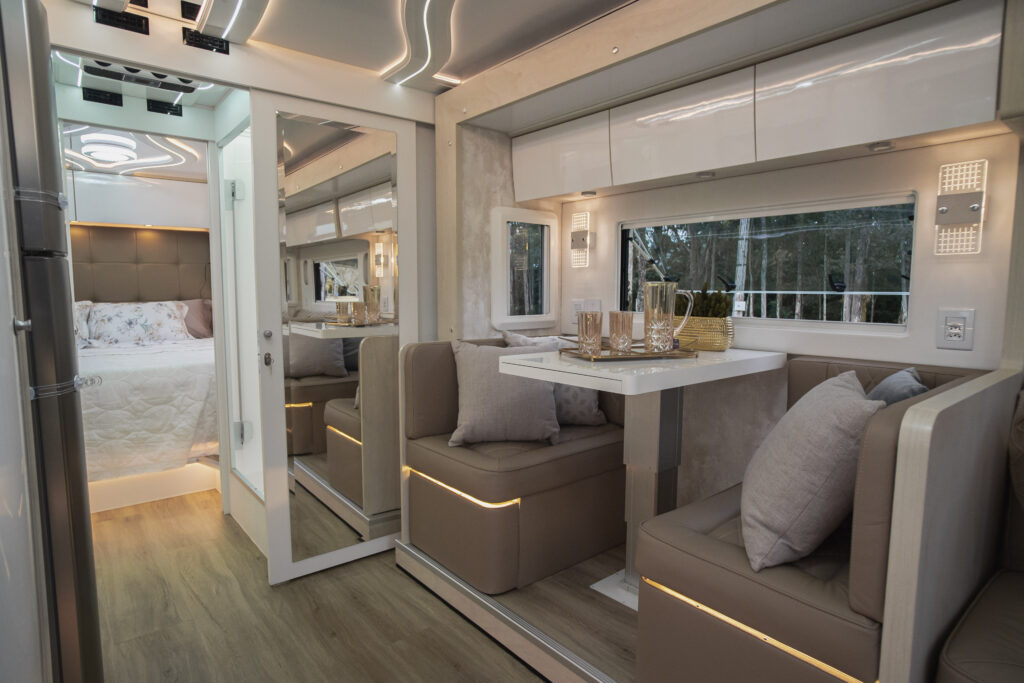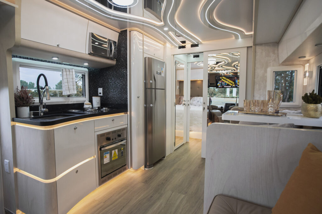 Conheça o modelo mais procurado do Brasil! Motorhome Neway Galaxy 2022! Tudo que há de mais completo na atualidade em estrutura, pintura, móveis e acabamentos, voce encontra aqui! Conforto para todos os passageiros, bancos em couro com duplo estofado, cambio automático e suspensão pneumática! Surpreenda-se com o GALAXY Linha Premium