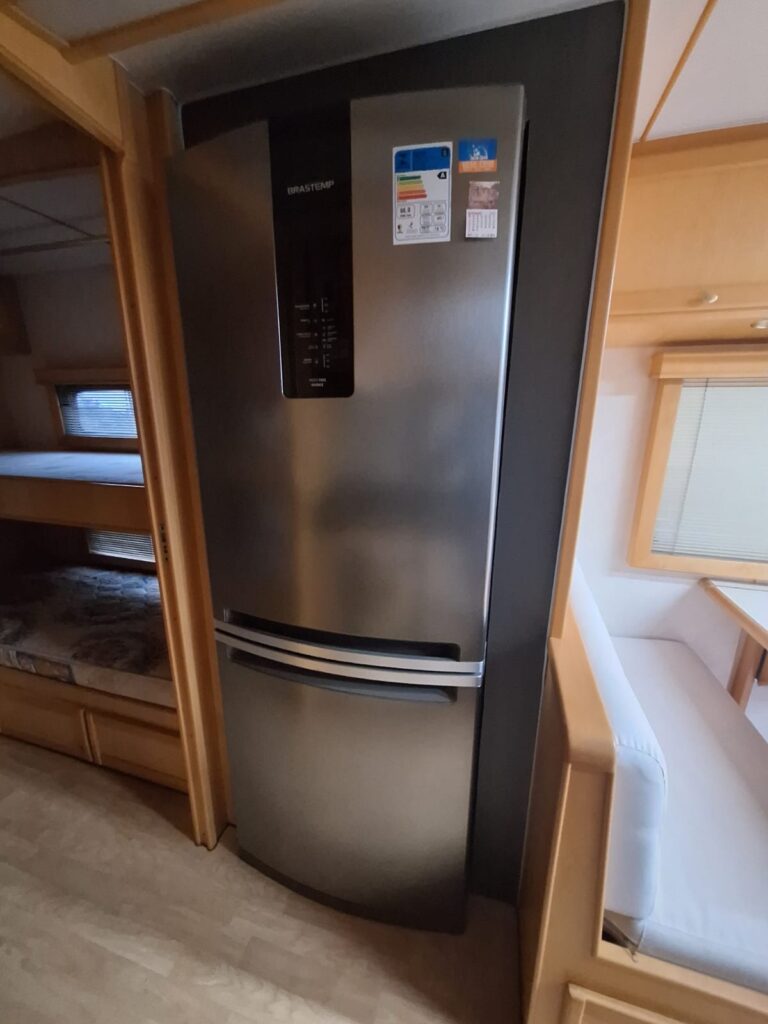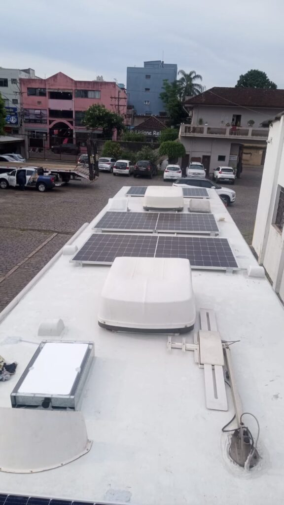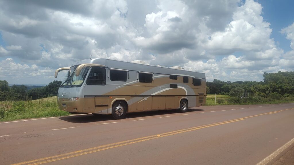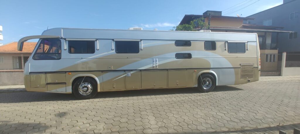 Televisão na sala, quarto de casal e sobre o motorista, Home theater, Toldo elétrico canadense, Starlink internet em qualquer lugar + antena tv aberta + crome cast com nais de 500 canais, Rádio CD + DVD, Rádio amador, Quarto de casal + 2 beliches para 4 pessoas + mesa VT que vira cama de casal + sofá cama de casal, Acomoda 10 pessoas documento 8 pessoas, 4 placas solares + 4 baterias e carregadores, Teto todo fibrado, Cambão de emergência, 6 pneus novos + 7 rodas de alumínio inclusive o stepe, Buzina a Ar, Degrau de entrada Hidráulico, Painel balcão com tv 55, Inversor 110 v e 220 v, Banheiro separado do chuveiro, espelhos elétricos, Luzes de led e quente interna, Luzes externa